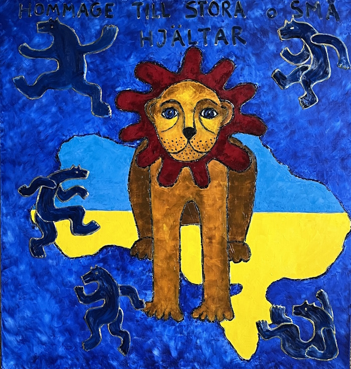 " Hommage to great and small heros" 105 x 100, oil on canvas, price 25000 kr